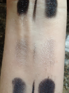 First and foremost, you need to enlarge these to see the amazing detail and glitter in all the shadows. They are really opaque, but since they are loose shadows I really suggest a primer. You can see from my photos that primer intensifies the color and also really helps with staying power. It took me forever to wash off the primed swatches.